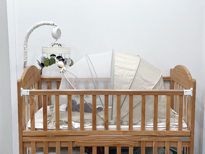 아기가 자는 곳 어디든 한 손으로 간편하게 펴기만 하면 설치 완료!