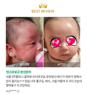 바디워시, 로션, 크림 3종 세트 사용 중이다. 향이 일단 너무 좋아서 밤새 아빠 품에 안겨 잔 칸이의 땀 냄새를 단번에 제거해 준다.신생아 때는 향이 너무 강한 게 아닌가 싶어 무향인 아토팜을 따로 구매했는데 2개월이 지난 지금은 잘 사용하고 있다.거품이 쫀득쫀득한 느낌이라 세정력이 좋고 멜라닌 생성억제 효과 및 락토코쿠스 발해 용해 물로 안색 개선 효과가 있다고 해서 아직도 황달기가 있는 칸이에게는 더욱더 열심히 사용하고 있는 제품이다.