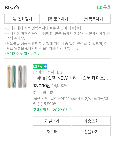 이런 멘트 듣다 보면 자연스레 나의 궁뎅이는 보험사 창구에 앉았다고 하지... 하지만 완벽하게 준비한 나의 보험은 사실 입 댈 것이 없었을 테고, 나의 대답을 듣다 보면 결국 사은품 하나를 쥐여준다고 한다. 그렇게 받은 피셔 라이프 이유식 스푼이 있어서 별도로 구매하지 않으려 했는데 5개월인 칸이에게는 스푼 사이즈가 너무 큰지 먹이면 흘리는 게 반이었다.