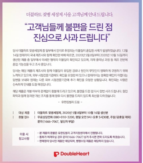 그 이후, 홈페이지를 통해 사과문을 게재한 유한킴벌리 측은 “지난해 5월 8일부터 10월 16일까지 판매된 제품의 환불 절차를 진행한다”며 “판매사로서 사전에 보다 철저히 관리하지 못한 데 대해 깊은 책임감을 느낀다”라고 밝혔다.