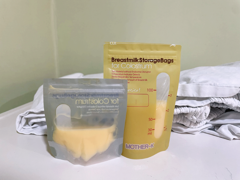 이것이 바로 성스러운 초유 아닌가?! 하지만... 젖을 물려야 할 우리 칸이는 NICU에 입원해 버렸고, 출산준비물 리스트에 포함되어 있던 모유 저장 팩에 담아 3시간에 한 번씩 유축한 뒤 칸이에게 열심히 전달했다.