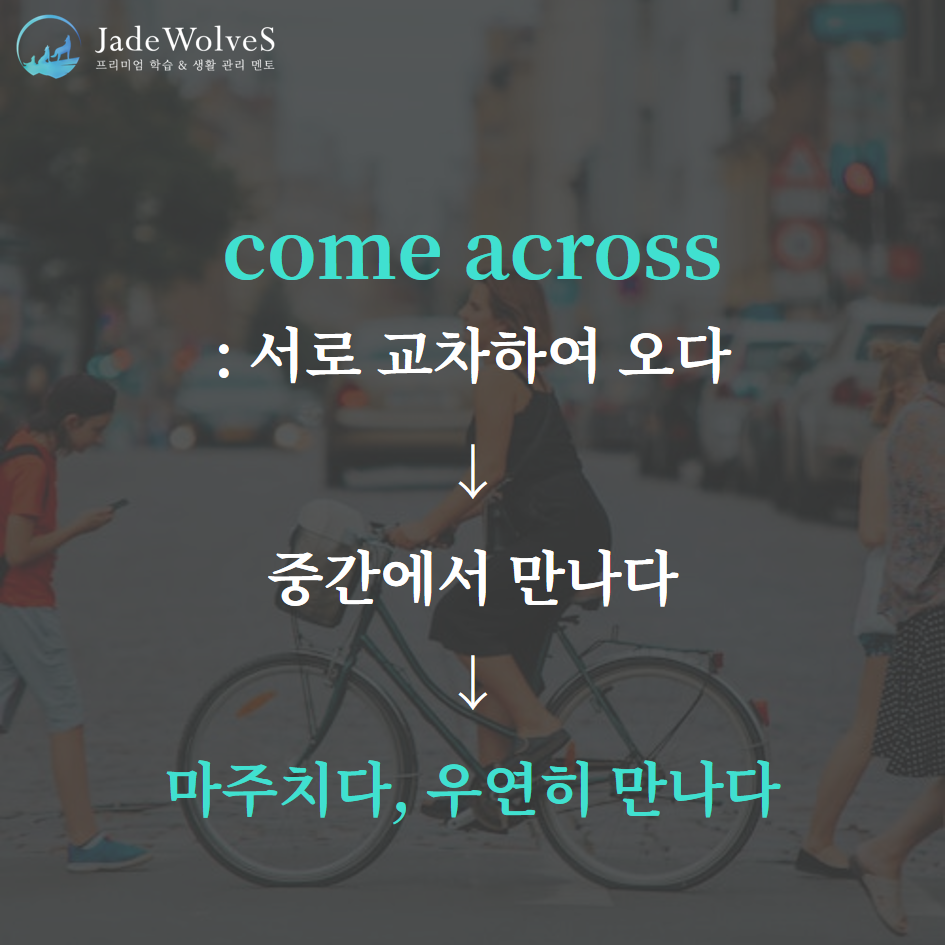 2) come across : "서로 교차하여 오다"라고 해서 "마주치다, 우연히 만나다"라는 의미로 사용됩니다.