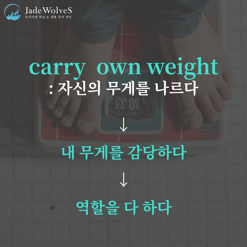1) carry own weight : "자신의 무게를 나르다"라고 해서 "역할을 다하다"라는 의미로 사용됩니다.