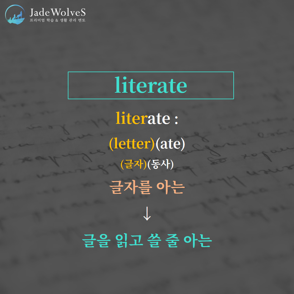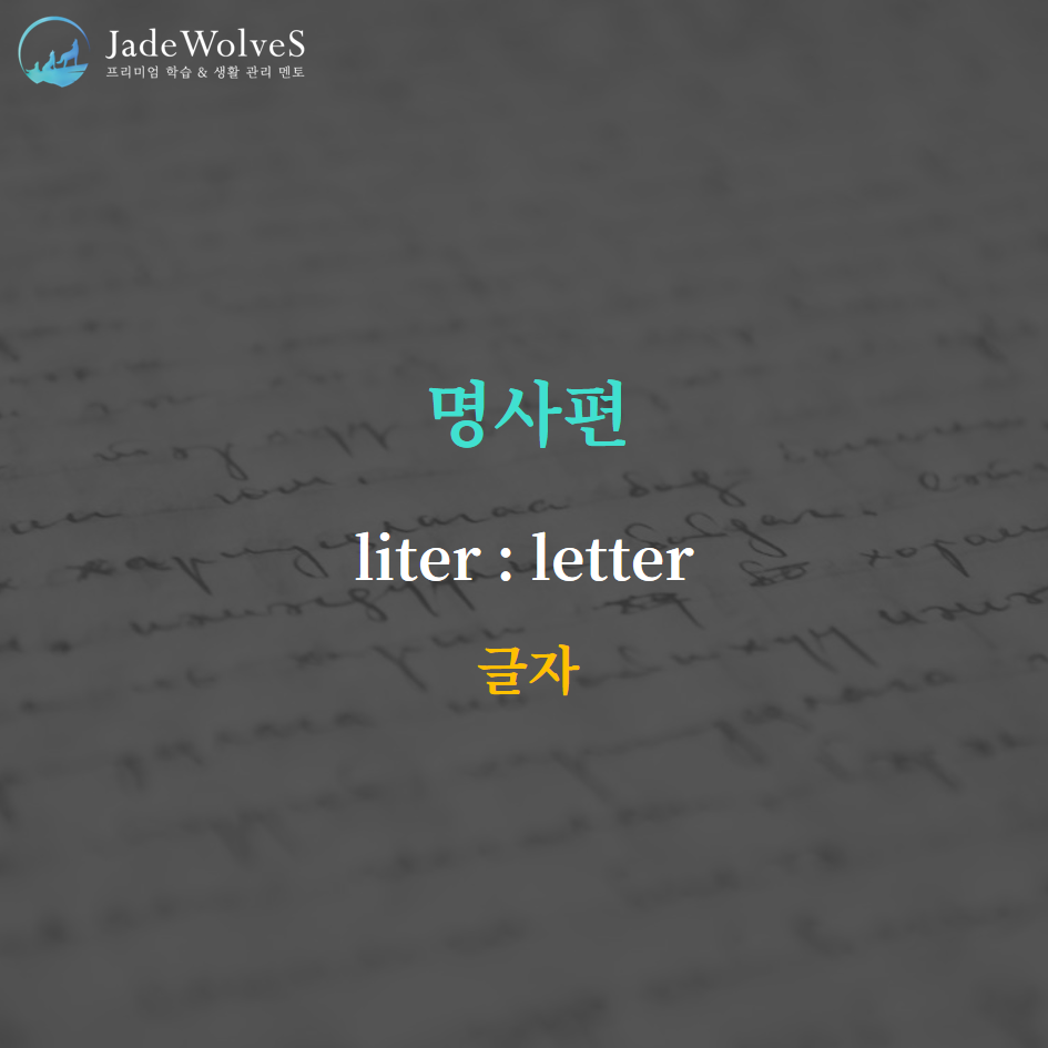"liter : 글자"라는 의미로 명사를 나타냅니다.