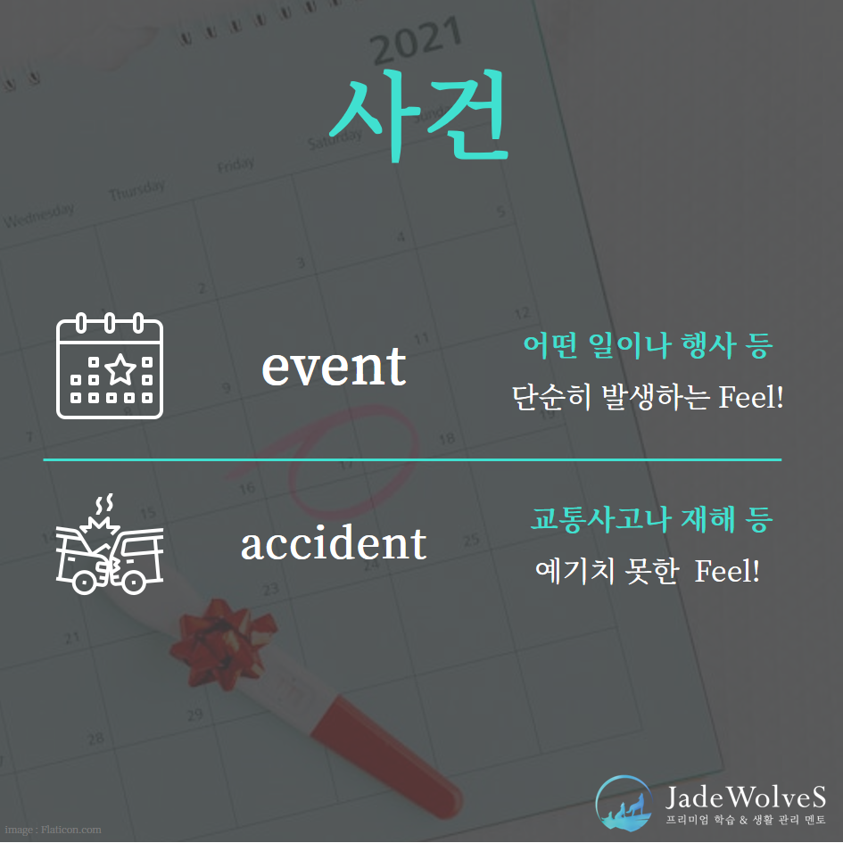 "event/accident는 사건"라는 같은 의미를 지니고 있습니다.