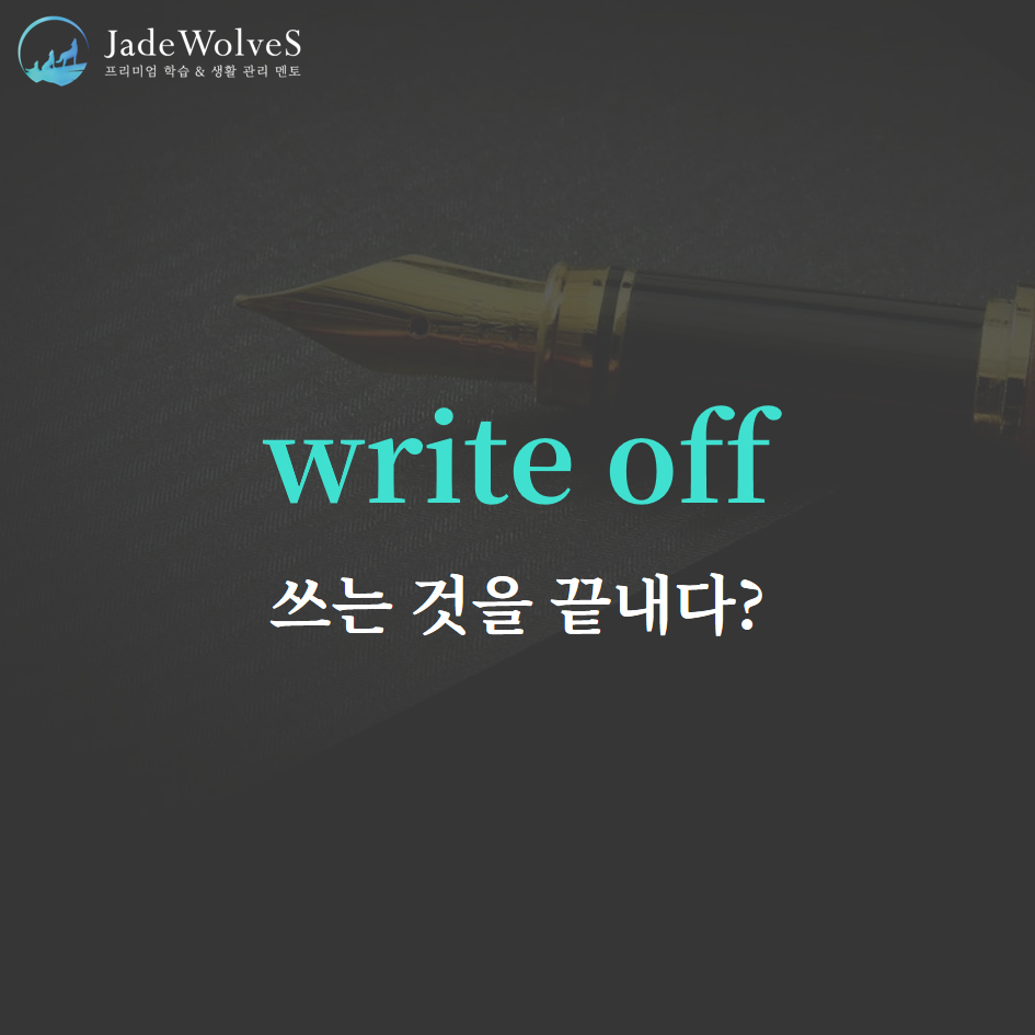 2) write off : "쓰다 멈추다"라고 해서 "단념하다"라는 의미로 사용됩니다.