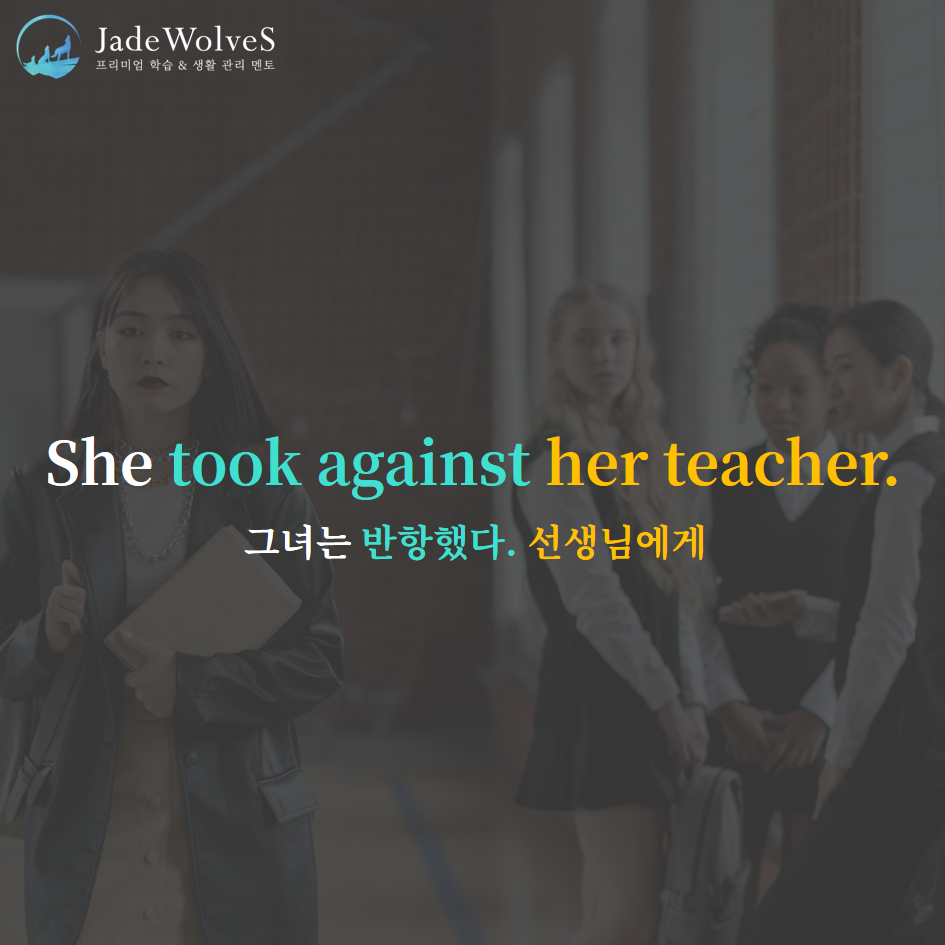 1) take against : "맞서서 가지다"라고 해서 "반항하다"라는 의미로 사용됩니다.