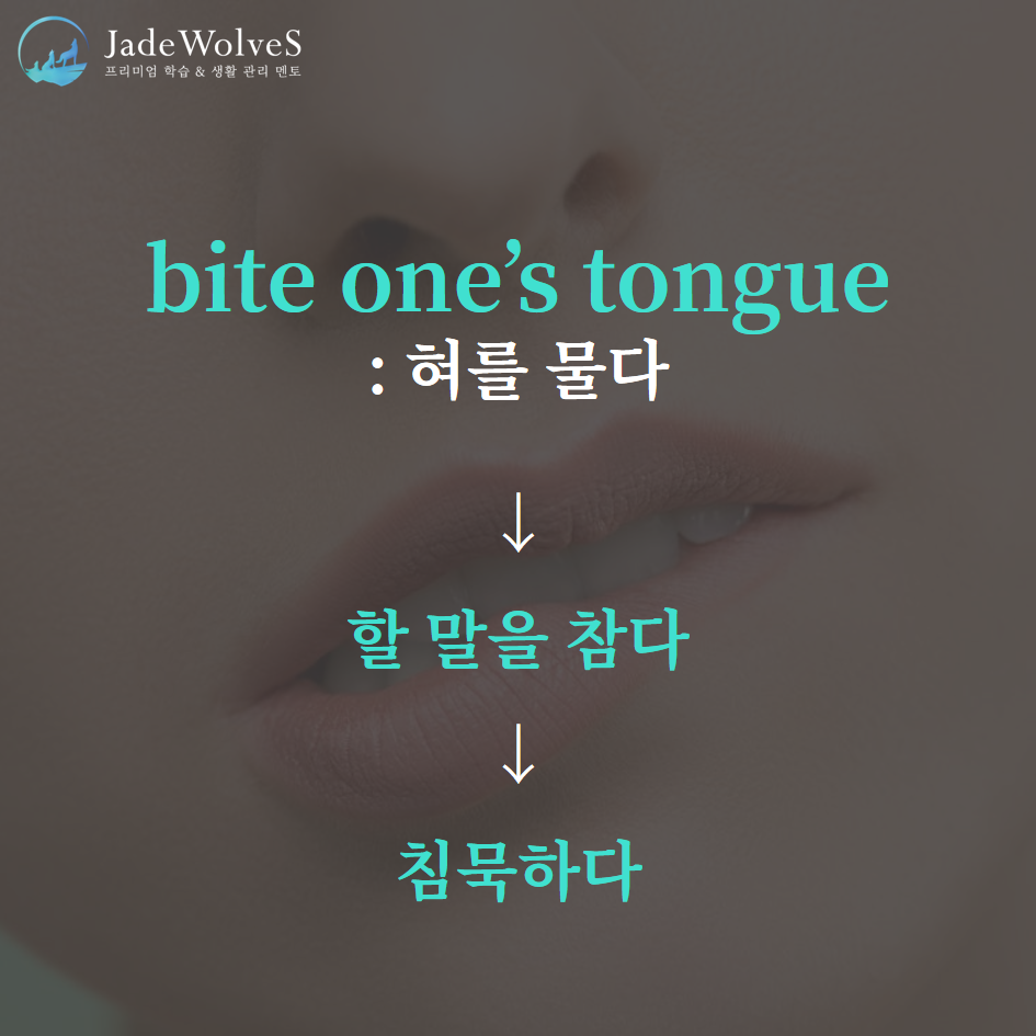 2) bit one's tongue : "혀를 물다"라고 해서 "침묵하다 "라는 의미로 사용됩니다.