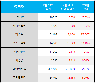 청랑 경제 식견/청랑 관심 종목 오늘의 관심 종목 수익률(2025.02.20) JWS 2025. 2. 20. 21:00 오늘의 관심 종목 수익률 저작자표시 비영리 변경금지 (새창열림)