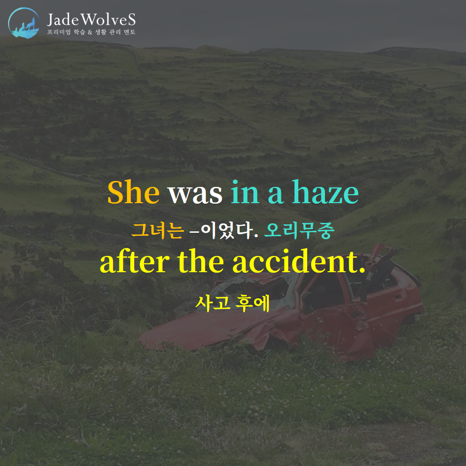 1) in a haze : "실안개 속에 - 알 수 없는"이라고 해서 "오리무중의"이라는 의미로 사용됩니다.