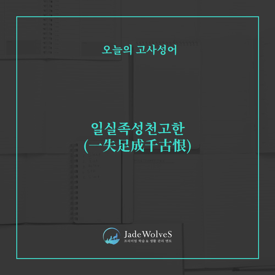 一失足成千古恨(일실족성천고한)는 "한 번 발을 잘못 디디면 천년의 한(恨)이 된다."라는 의미로 작고 순간적인 실수라도 돌이킬 수 없는 결과를 가져올 수 있다는 뜻입니다. 중국 송나라 때 문인이자 시인이었던 서하(西河) 이장경(李長卿)의 시에서 유래되었습니다. 원래 이 표현은 불교 경전이나 고대 문헌에서 자주 사용되던 표현이었고, 이후 문인들의 시문 속에서 비유적으로 널리 사용되었습니다. 특히 다음과 같은 구절에서 유명해졌습니다.