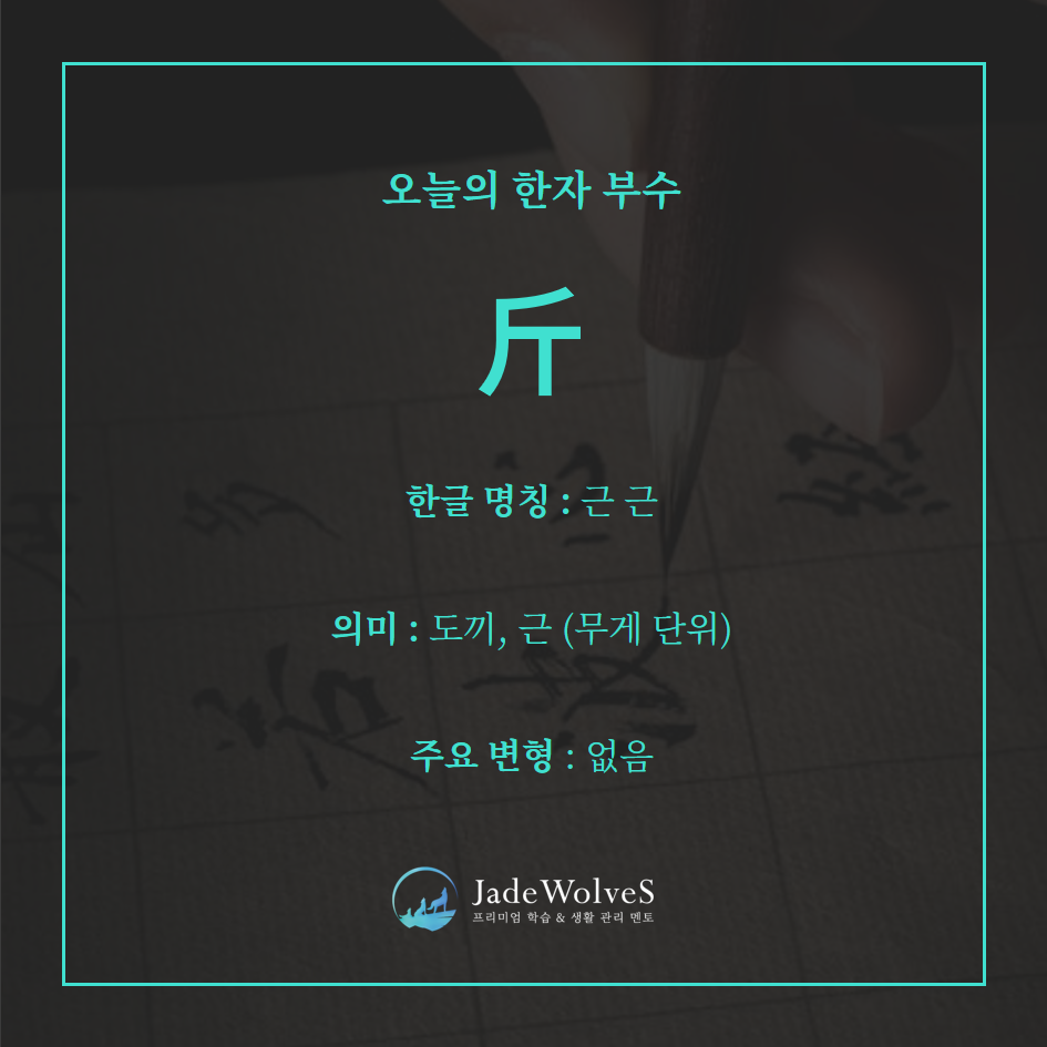자르거나 나누는 데 쓰이는 도구로 측정, 힘, 노동의 상징으로 발전 후에 중국에서는 무게 단위 ‘근’으로도 사용됩니다.
