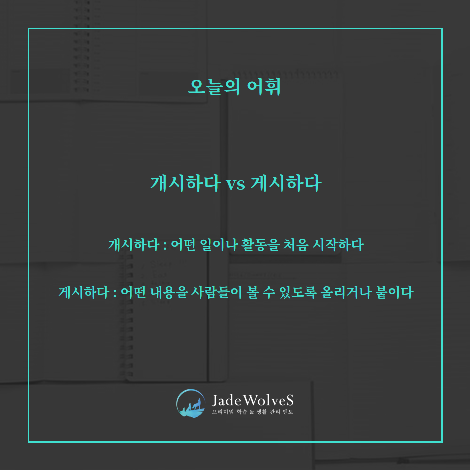 청랑의 어휘력 높이기: 오늘은 ‘개시하다’와 ‘게시하다’의 차이점에 대해 알아보겠습니다.