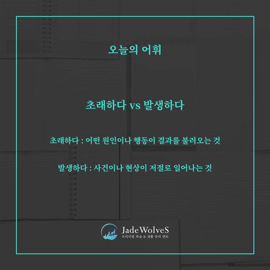 청랑의 어휘력 높이기오늘은 ‘초래하다’와 ‘발생하다’의 차이점에 대해 알아보겠습니다.