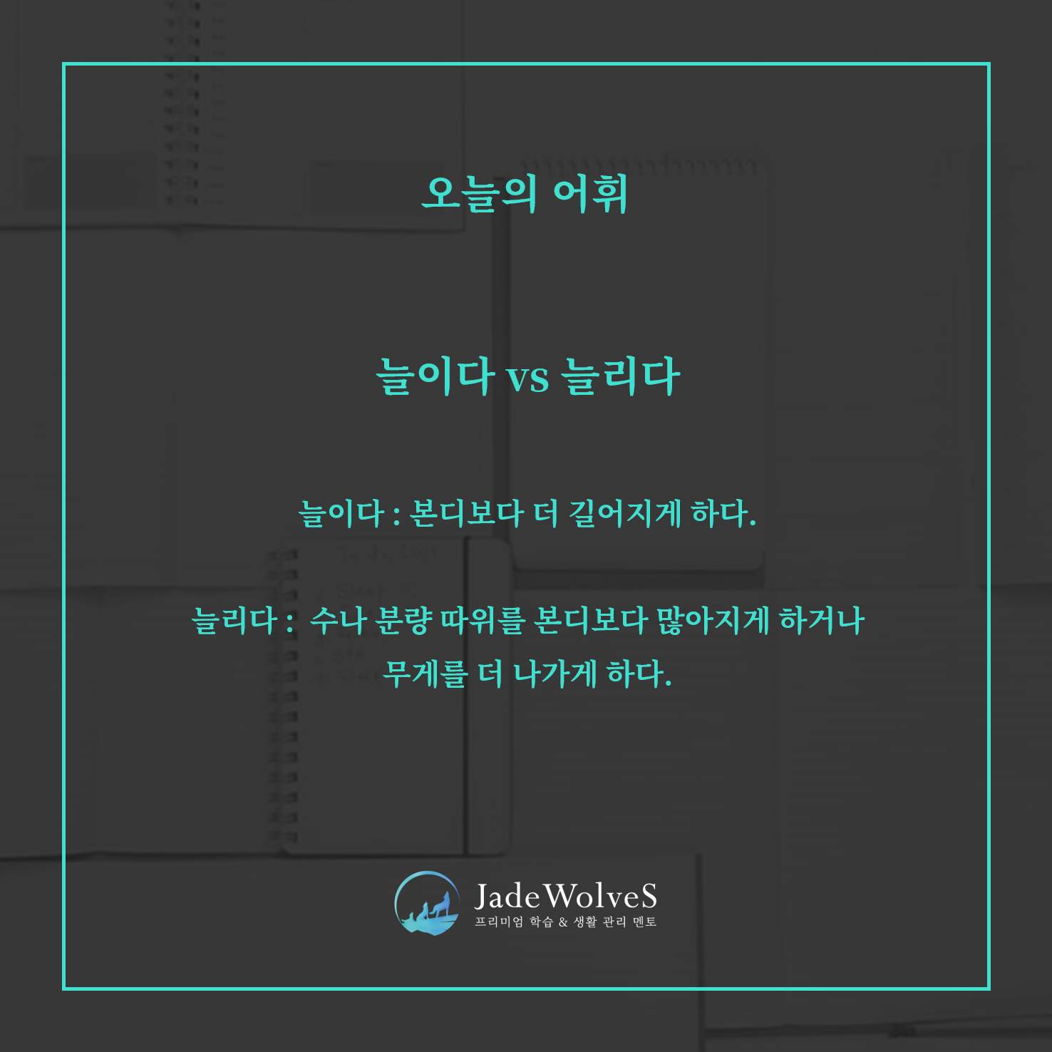 청랑의 어휘력 높이기 : 오늘은 '늘이다'와 '늘리다'의 차이점에 대해 알아보겠습니다.