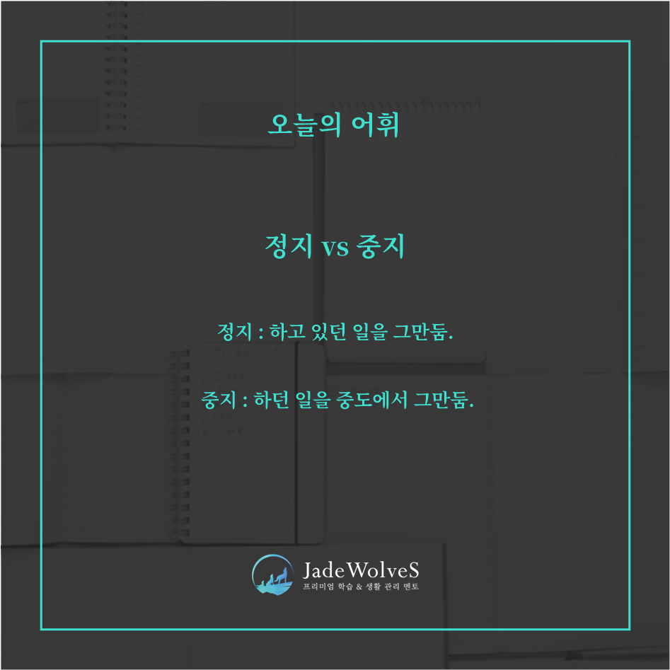 청랑의 어휘력 높이기 : 오늘은 '정지'와 '중지'의 차이점에 대해 알아보겠습니다.