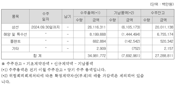 한화오션의 24년 3분기 누적 매출액은 이미 23년 전체 매출을 넘어섰으며 수주 잔고는 약 27조 원으로 꾸준한 실적을 기대해 볼 수 있습니다. 이에 영업이익은 흑자로 돌아섰으며 세전 손실과 분기 순손실은 큰 폭으로 줄어들었습니다. 또한 거제의 또 다른 대형 조선소인 삼성중공업도 비슷한 상황입니다. 최근에도 컨테이너선 4척을 수주받는 등 활발한 움직임을 보여주고 있으며 23년 3분기 누적 실적과 24년 3분기 누적 실적을 비교해 보면 크게 개선되었음을 알 수 있습니다. 삼성중공업의 수주 잔고도 약 31조 원으로 거제 조선업의 회복을 알려주고 있습니다.