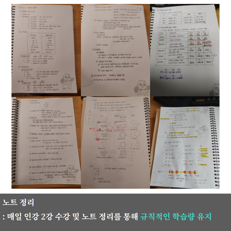 노트 정리(매일 인강 2개 수강)로 규칙적인 학습량을 유지하는 데 집중했습니다.