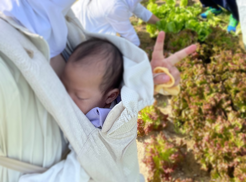 사실 칸이는 아기 띠를 하고 있는 엄마 품에 안겨 외할비와 아빠가 열심히 상추 따는 내도록 꿈나라행이었지만^^