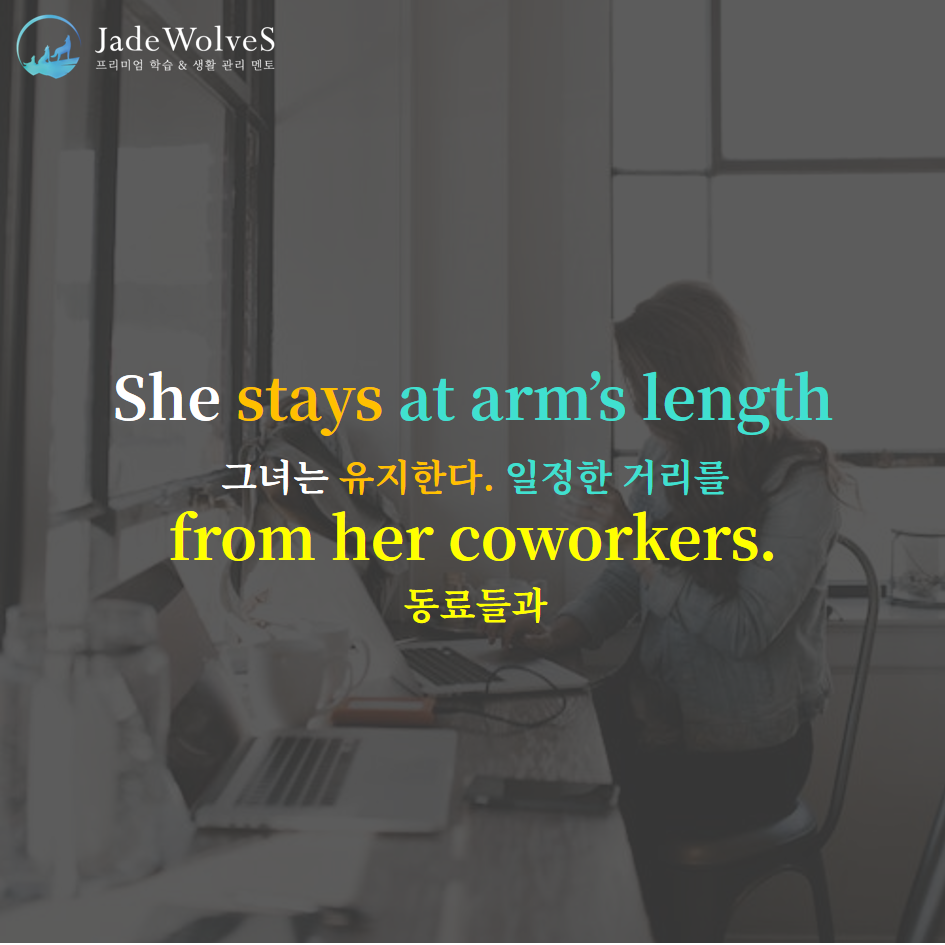 2) at arm's length : "팔의 거리에"라고 해서 "적당한 거리에"라는 의미로 사용됩니다.