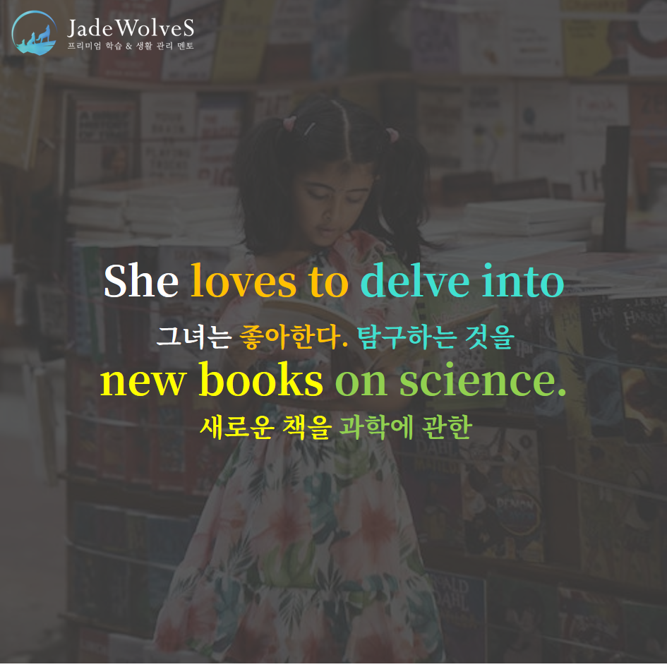 1) delve into : "안쪽을 뒤지다"라고 해서 "탐구하다"라는 의미로 사용됩니다.