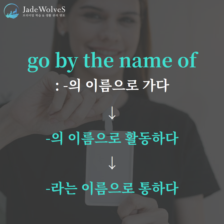 2) go by the name of : "~의 이름으로 가다"라고 해서 "~라는 이름으로 통하다"라는 의미로 사용됩니다.