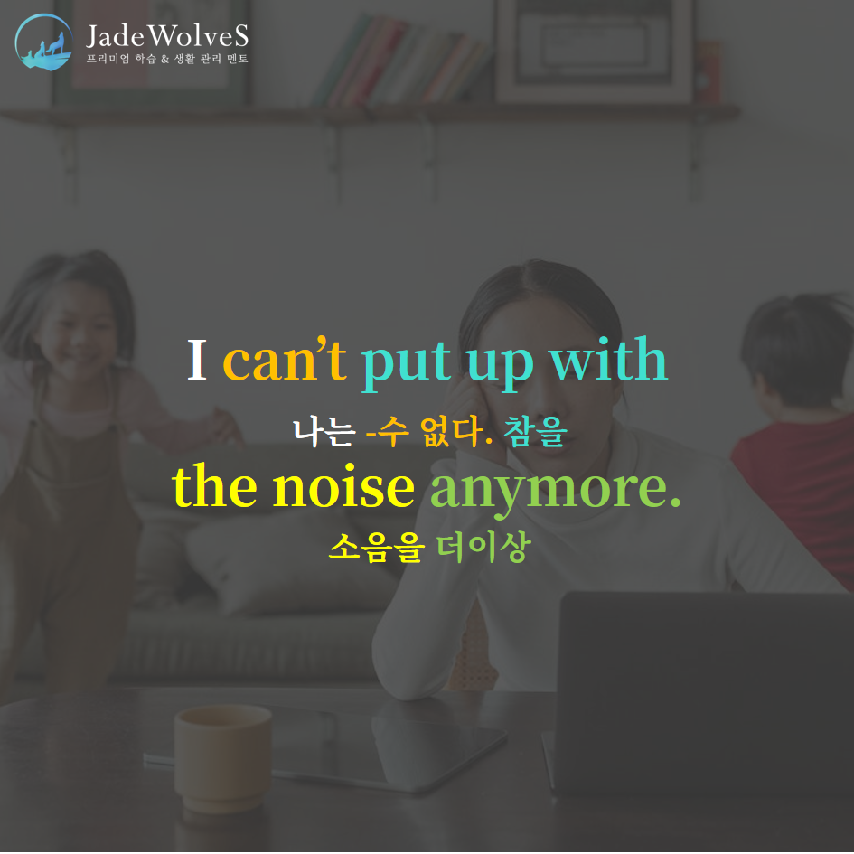 1) put up with : "위에 함께 두다"라고 해서 "참다, 견디다"라는 의미로 사용됩니다.