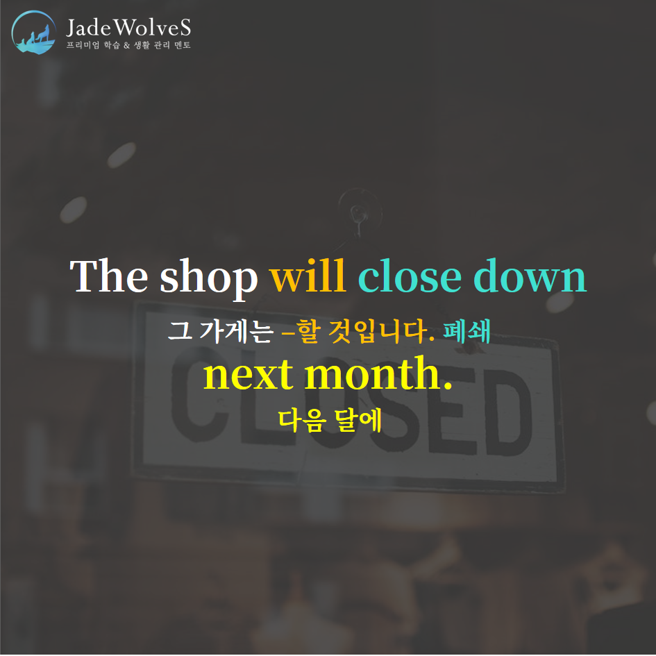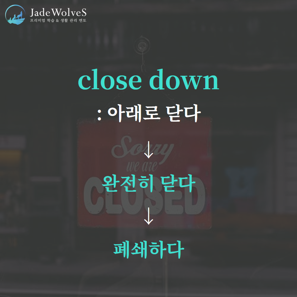 1) close down : "완전히 닫다"라고 해서 "폐쇄하다"라는 의미로 사용됩니다.