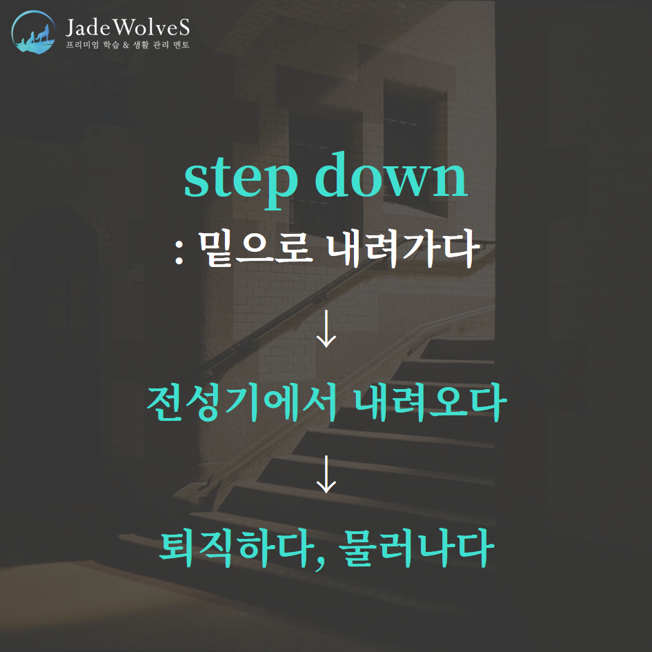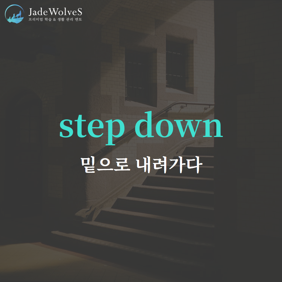 2) step down : "전성기에서 내려오다"라고 해서 "물러나다"라는 의미로 사용됩니다.