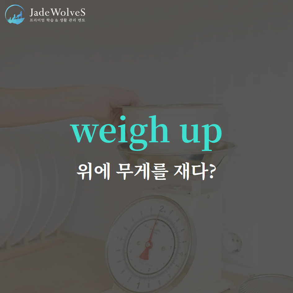 2) weigh up : "가늠해보다"라고 해서 "심사숙고하다"라는 의미로 사용됩니다.